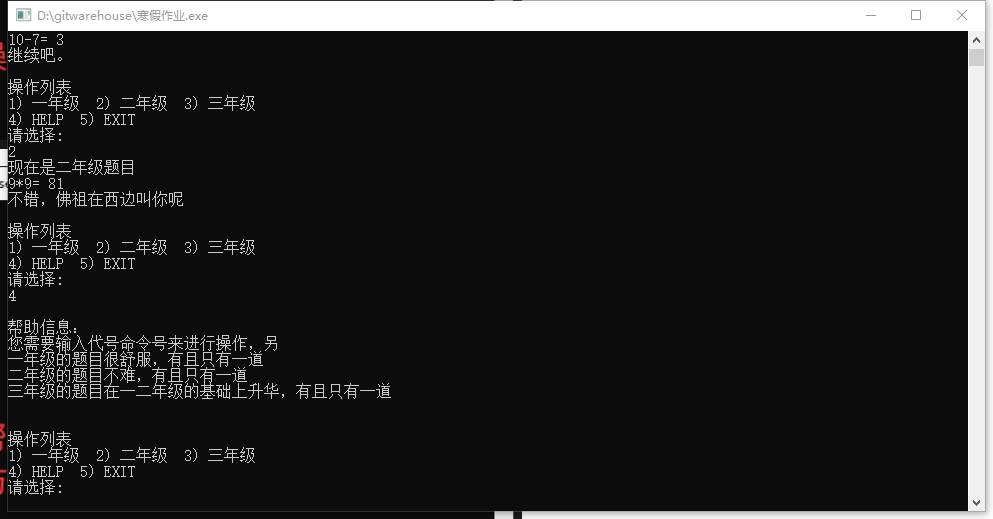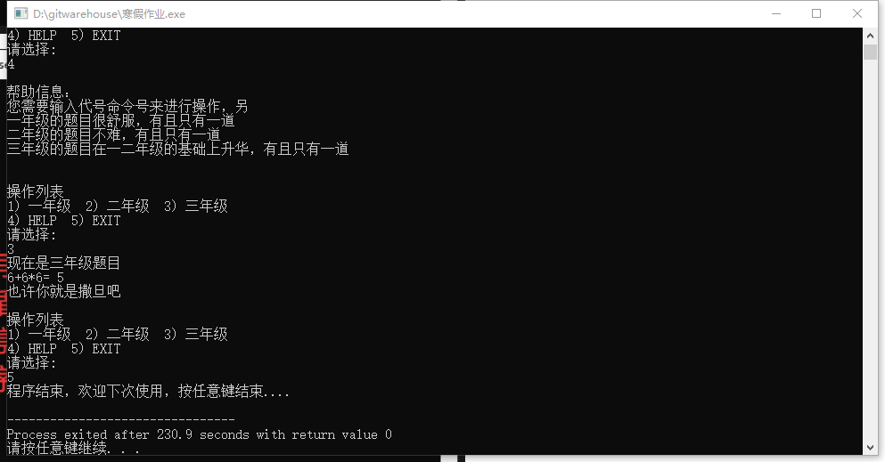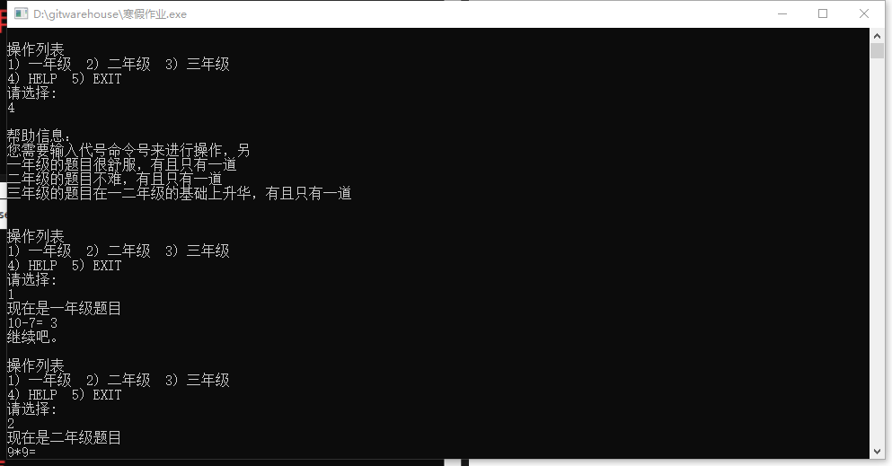 有点吓人(行数多)→easy(大多都是用printf)→舒服→傻了(打完运行不了)→有惊无险(用dev运行)