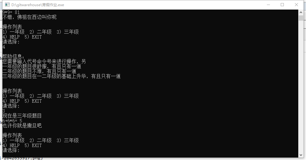 printf("三年级的题目在一二年级的基础上升华,有且只有一道\n");