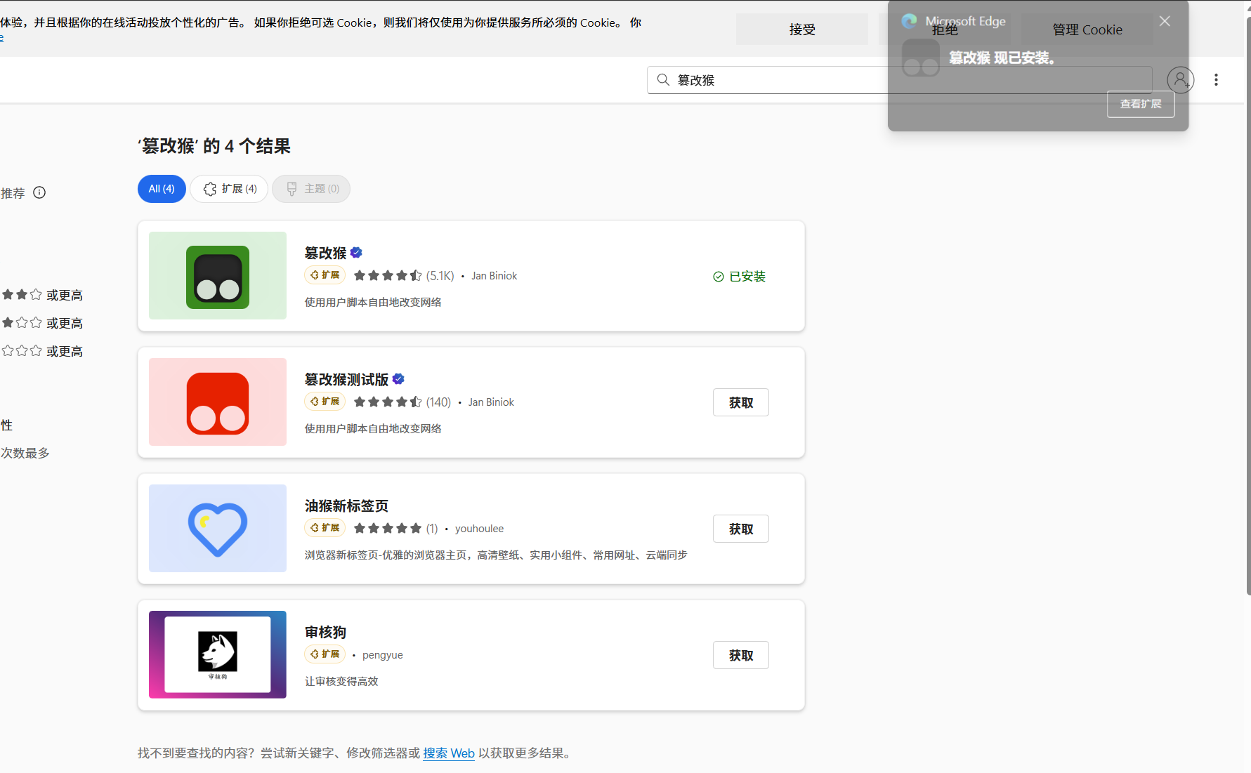 首先我们要知道,在edge或者谷歌浏览器中,都是有着插件功能的,这个功能十分强大,再次我就不展开说明了,我们这里要介绍的主角篡改猴只是插件功能的一个小部分。