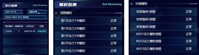 塔筒螺栓和叶根螺栓在线监测模块可以实时监测风机关键位置连接螺栓的紧固状态、反旋松动、螺栓预紧力偏差等数据,有效保障机组的安全稳定运行。