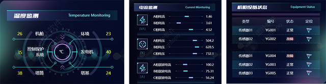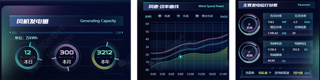 我们还设计了炫酷的一站式风机数据可视化展示平台,自由部署实时数据,项目运行状态和健康状态尽收眼底。