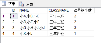 select *, len(name)-len(replace(name, ',', ''))+1 '逗号的个数' from STUDENT_CLASS