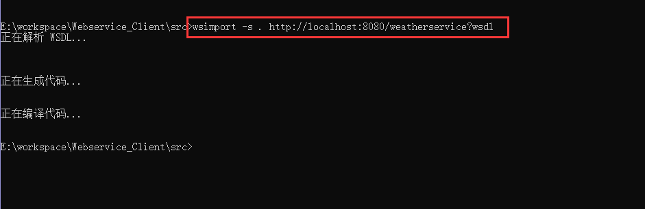输入:wsimport -s . http://localhost:8080/weatherservice?wsdl