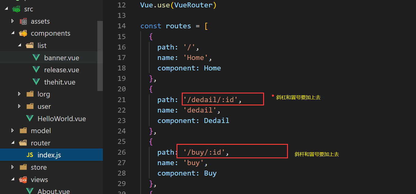 2.带参数再怎么在路由配路径 在router配好路径
