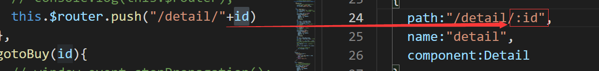 1.在当前组件写上 this.$router.push("/buy/" + id); 注意要加斜杠 "/buy" 表示在路由中配的路径