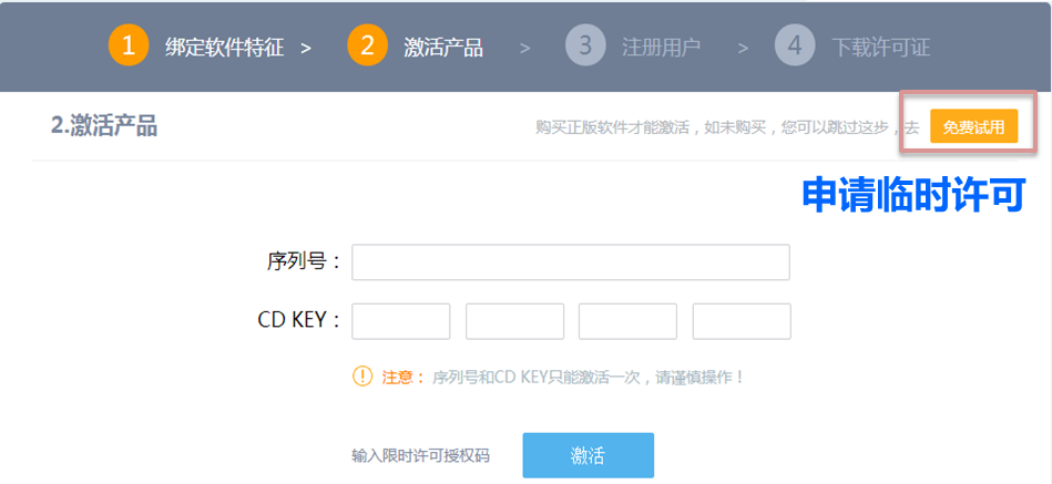 购买正版软件才能激活,如未购买,您可以跳过这步,去免费试用