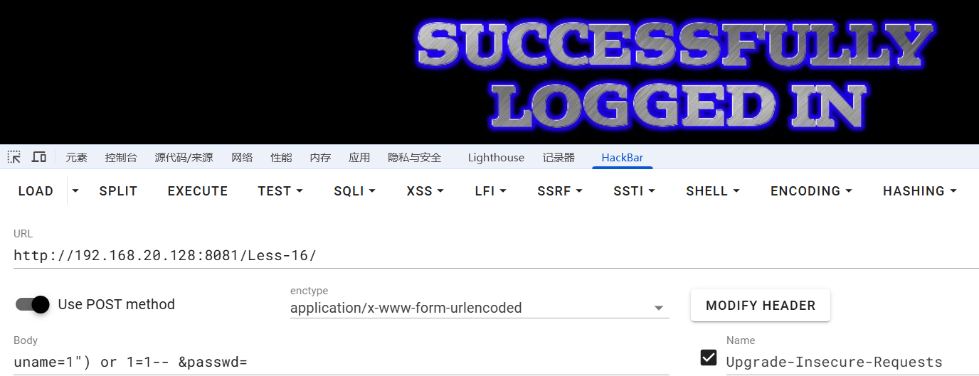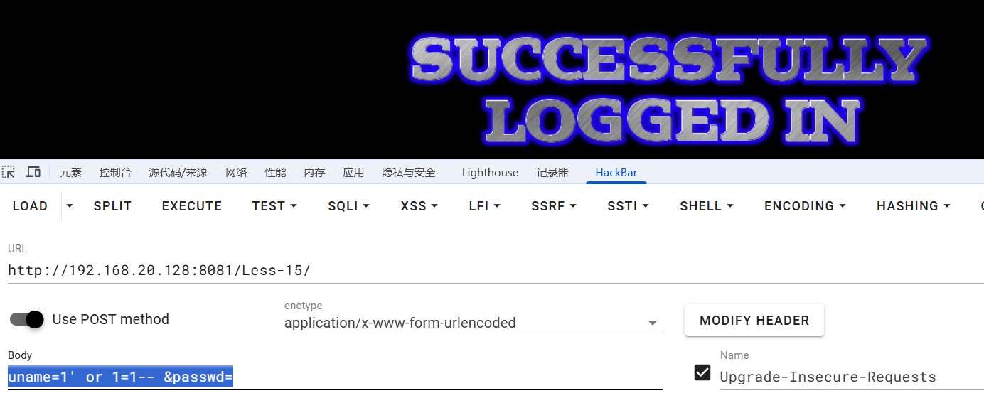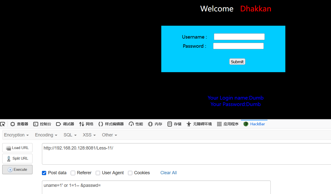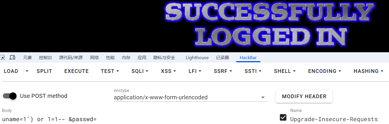 uname=1') or 1=1-- &passwd=,回显登录成功