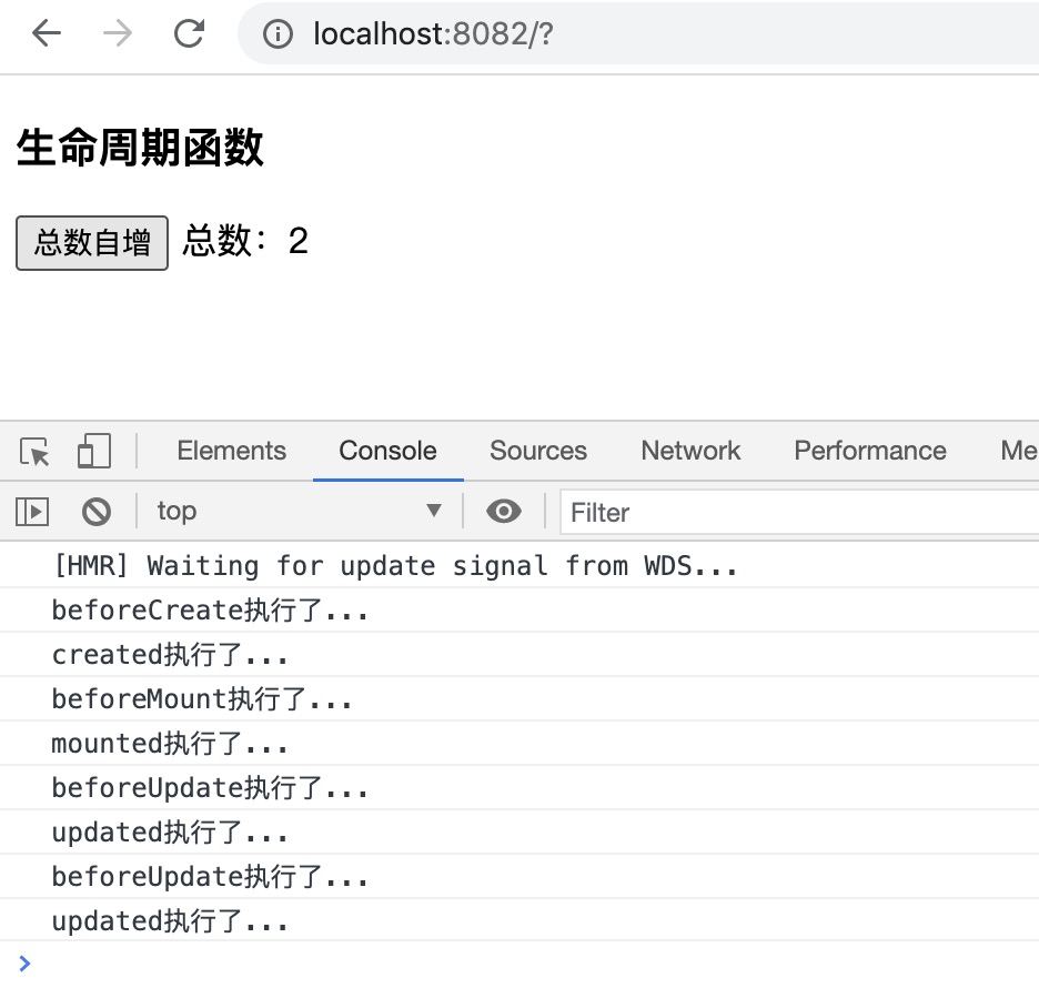 <button @click="total++">总数自增</button> 总数:{{total}}