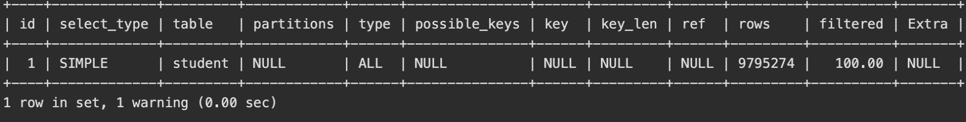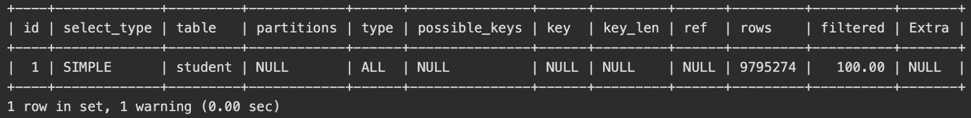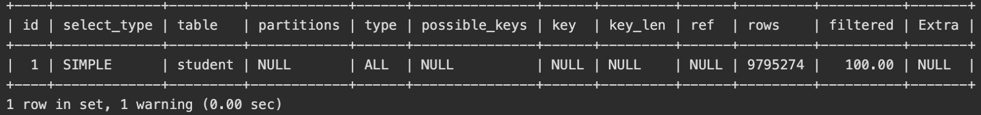 ALL:Full Table Scan, MySQL将遍历全表以找到匹配的行