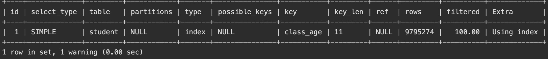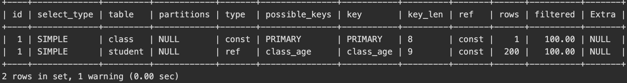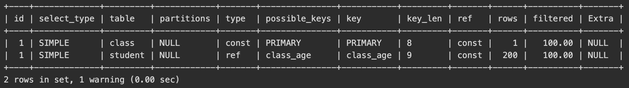 explain select * from student left join class on class.id=student.class_id where class.id=1;