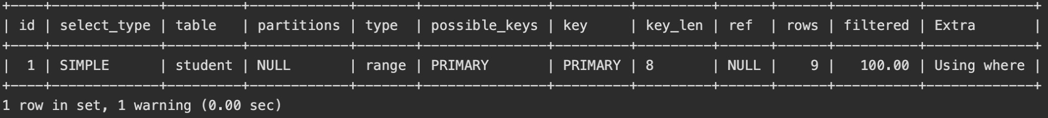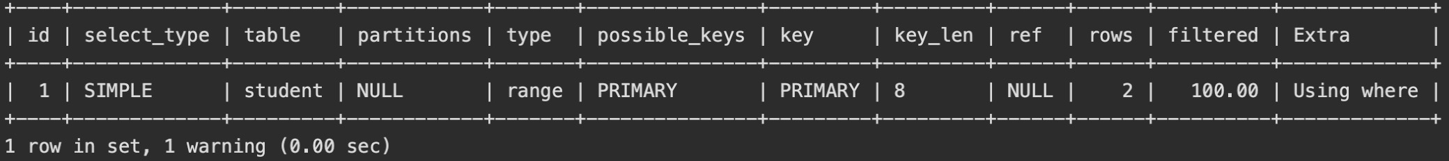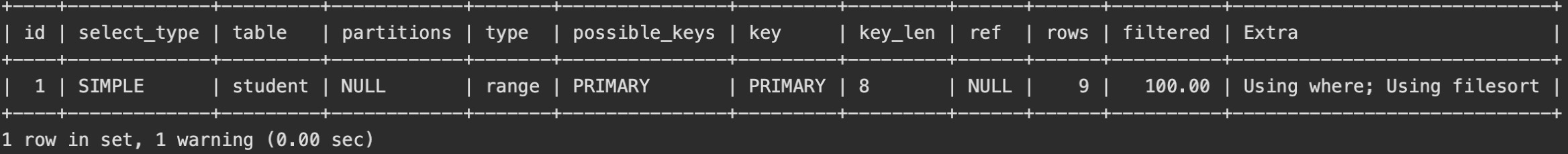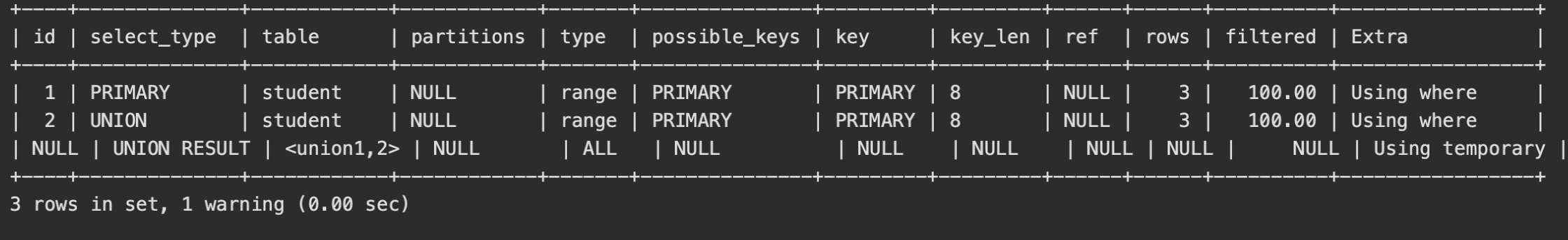 explain select * from student where id in (1,2,3) union select * from student where id in(7,8,9);