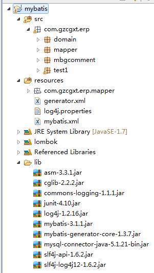 <?xml version="1.0" encoding="UTF-8"?> <!DOCTYPE generatorConfiguration PUBLIC "-//mybatis.org//DTD MyBatis Generator Configuration 1.0//EN" "http://mybatis.org/dtd/mybatis-generator-config_1_0.dtd"> <generatorConfiguration> <context id="mysql" targetRuntime="MyBatis3" > <!-- 生成的 Java 文件的编码 --> <property name="javaFileEncoding" value="UTF-8"/> <!-- 自定义注释生成器 --> <commentGenerator type="com.gzcgxt.erp.mbgcomment.MySQLCommentGenerator"> <property name="suppressAllComments" value="false"/> <property name="author" value="Liu shi hua"/> <property name="dateFormat" value="yyyy/MM/dd HH:mm:ss"/> </commentGenerator> <!-- 配置数据库连接 --> <jdbcConnection driverClass="com.mysql.jdbc.Driver" connectionURL="jdbc:mysql://127.0.0.1:3306/mybatis" userId="root" password="root"> <!-- 设置 useInformationSchema 属性为 true --> <property name="useInformationSchema" value="true" /> </jdbcConnection> <!-- 生成实体的位置 --> <javaModelGenerator targetPackage="com.gzcgxt.erp.domain" targetProject="./src"> <property name="enableSubPackages" value="true"/> </javaModelGenerator> <!-- 生成 Mapper 接口的位置 --> <sqlMapGenerator targetPackage="com.gzcgxt.erp.mapper" targetProject="./src"> <property name="enableSubPackages" value="true"/> </sqlMapGenerator> <!-- 生成 Mapper XML 的位置 --> <javaClientGenerator targetPackage="com.gzcgxt.erp.domain" type="XMLMAPPER" targetProject="./resources"> <property name="enableSubPackages" value="true"/> </javaClientGenerator> <!-- 设置数据库的表名和实体类名 --> <table tableName="user" domainObjectName="User"/> </context> </generatorConfiguration>