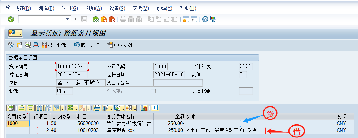 红冲 制作一笔1月份的 借:管理费用-垃圾清理费 贷:库存现金