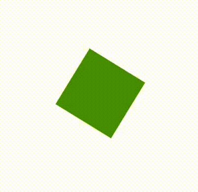 1 div{ 2 width: 100px; 3 height: 100px; 4 background-color: rgb(64, 136, 44); 5 animation: change 1s linear infinite; 6 } 7 @keyframes change{ 8 0%{ 9 transform: rotate(0deg); 10 } 11 100%{ 12 transform: rotate(360deg); 13 } 14 }