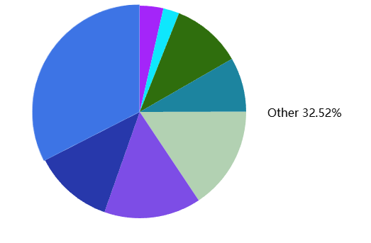 1 <html lang="zh"> 2 <head> 3 <meta charSet="utf-8" /> 4 <title>饼图demo</title> 5 <style> 6 .pie { 7 width: 300px; 8 height: 300px; 9 position: relative; 10 margin:0px auto; 11 } 12 13 .pie .sector { 14 position: absolute; 15 width: 100%; 16 height: 100%; 17 transition: all .3s ease-in; 18 } 19 20 .pie .sector:hover { /** 鼠标放上去的时候,扇形放大 **/ 21 transform: scale(1.1); 22 } 23 24 .pie .title { 25 display: none; 26 } 27 28 .pie .sector:hover + .title { /** 鼠标放上去的时候,提示语的显示设置,这个可以进行优化 **/ /*加号用于选择紧接在另一个选择器之后的兄弟元素*/ 29 position: absolute; 30 top: 50%; 31 left: 110%; 32 width: 120px; 33 transform: translateY(-50%); 34 display: block; 35 } 36 </style> 37 </head> 38 <body> 39 <div id="pie"> 40 </div> 41 <script> 42 const data = [ 43 {ratio: 0.0358, title: 'Python 3.58%'}, 44 {ratio: 0.0244, title: 'C 2.44%'}, 45 {ratio: 0.1066, title: 'Java 10.66%'}, 46 {ratio: 0.0829, title: 'C++ 8.29%'}, 47 {ratio: 0.1568, title: 'C# 15.68%'}, 48 {ratio: 0.1474, title: 'Visual Basic 14.74%'}, 49 {ratio: 0.1209, title: 'JavaScript 12.09%'}, 50 {ratio: 0.3252, title: 'Other 32.52%'}, 51 ] 52 53 54 function execPoint(cx, cy, r, ratio) { 55 // 计算弧度,一个整圆弧度是 2π 56 const rad = ratio * 2 * Math.PI 57 return { 58 x: cx + Math.sin(rad) * r, 59 y: cy - Math.cos(rad) * r 60 } 61 } 62 63 /** 64 * 构建裁剪路径 65 * @param data 数据 66 * @param width 元素宽度,宽高相同 67 */ 68 function buildSectorPaths(data, width) { 69 // 偏转量 70 let offset = 0 71 // 圆心坐标 72 const cx = width / 2 73 const cy = width / 2 74 // 半径 75 const r = width / 2 76 const result = [] 77 for (const datum of data) { 78 let path = `M ${cx},${cy}` 79 // 圆弧起点 80 const start = execPoint(cx, cy, r, offset) 81 path += ` L ${start.x},${start.y}` 82 // 圆弧终点 83 offset += datum.ratio 84 const end = execPoint(cx, cy, r, offset) 85 // 圆弧大关圆画大圆,否则画小圆 86 const angle = datum.ratio * 2 * Math.PI 87 path += ` A ${r},${r} 0,${angle > Math.PI ? 1 : 0},1 ${end.x},${end.y}` 88 path += ' Z' 89 result.push(path) 90 } 91 return result; 92 } 93 function buildPie(containerEl, data) { 94 containerEl.classList.add('pie') 95 const paths = buildSectorPaths(data, 300) 96 for (let i = 0; i < paths.length; i++) { 97 const path = paths[i] 98 const sector = document.createElement('div') 99 sector.classList.add('sector') 100 sector.style.clipPath = `path('${path}')` 101 // 给个随机背景色 102 const r = Math.floor(Math.random() * 255); 103 const g = Math.floor(Math.random() * 255); 104 const b = Math.floor(Math.random() * 255); 105 sector.style.backgroundColor = `rgb(${r},${g},${b})` 106 containerEl.appendChild(sector) 107 // 新增加的标题 108 const title = document.createElement('div') 109 title.classList.add('title') 110 title.innerText = data[i].title 111 containerEl.appendChild(title); 112 } 113 } 114 const pie = document.getElementById('pie') 115 buildPie(pie, data) 116 </script> 117 </body> 118 </html>