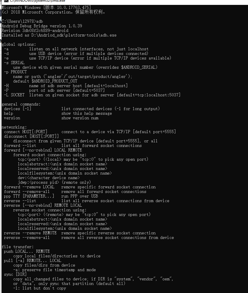 在cmd界面输入“adb”和“appt”来判断是否安装成功。如下图: