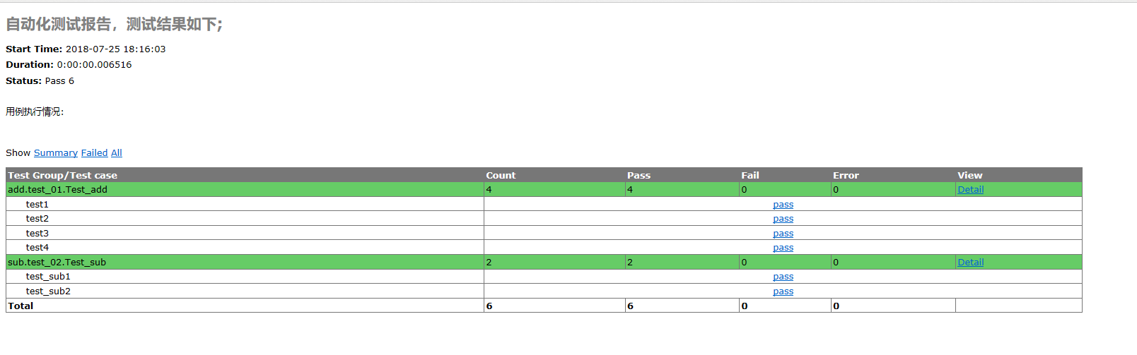 import unittest import os # 用例路径 case_path = os.path.join(os.getcwd(), "case") # 报告存放路径 report_path = os.path.join(os.getcwd(), "report") def all_case(): discover = unittest.defaultTestLoader.discover(case_path, pattern="test*.py", top_level_dir=None) print(discover) return discover if __name__ == "__main__": runner = unittest.TextTestRunner() import HTMLTestRunner report_path = "D:\\python3test\\report\\result.html" fp = open(report_path, "wb") runner = HTMLTestRunner.HTMLTestRunner(stream=fp, title=u'自动化测试报告,测试结果如下;', description=u'用例执行情况:') runner.run(all_case()) fp.close()