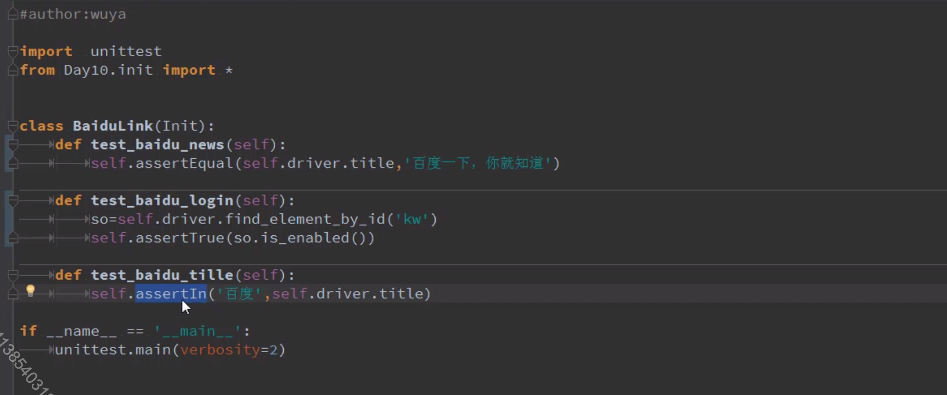 assert*():一些断言方法:在执行测试用例的过程中,最终用例是否执行通过,是通过判断测试得到的实际结果和预期结果是否相等决定的。