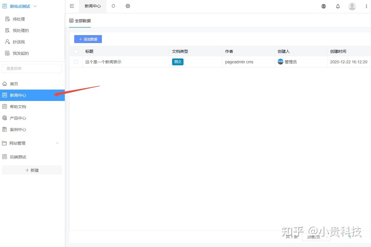 点击左上角箭头,关闭开发窗口,就可以看到我们制作的新闻中心管理界面。
