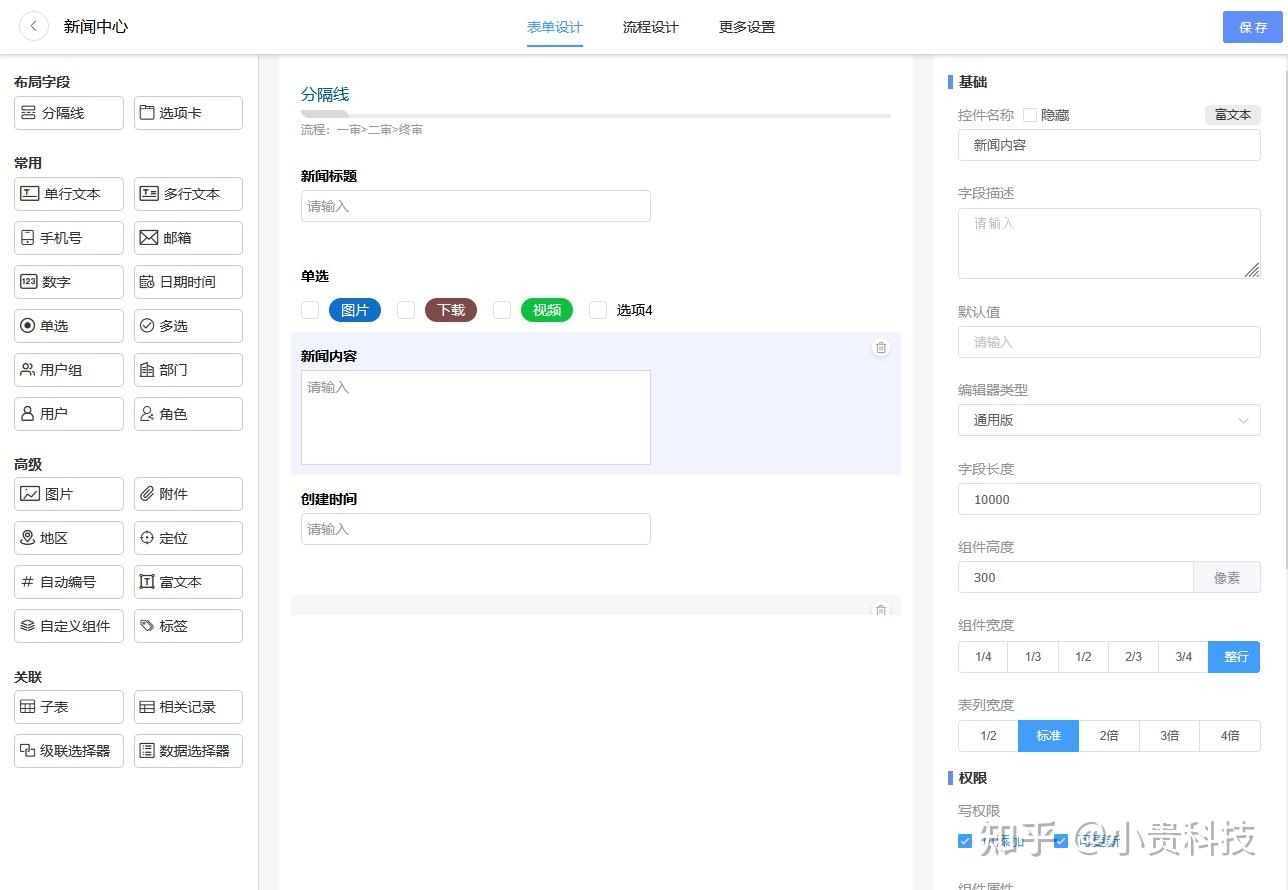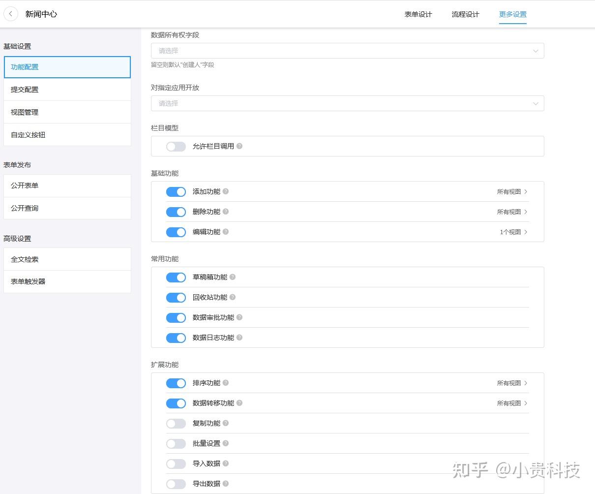 设计好表单组件和流程后,就可以对表单功能进行基本配置。