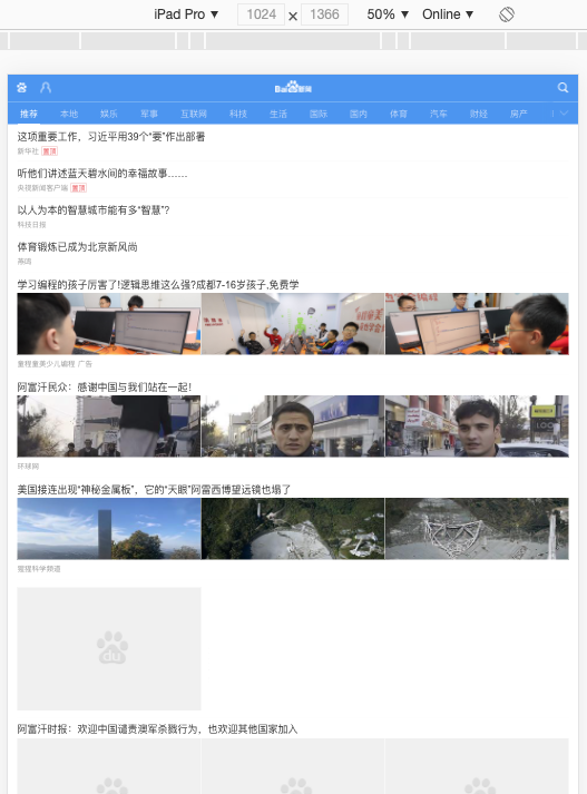 例如百度新闻:当屏幕变宽时,字号未变,图片适应宽度改变。(此处图片使用了裁切,高度固定,也可不固定)