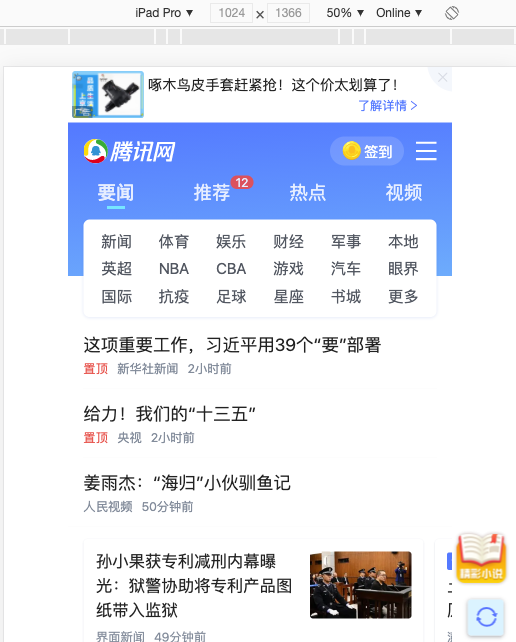 [x,768],所有内容单位都是相对单位rem或vw,在此范围内页面将进行响应式变化。x,网易为250px,腾讯为300px。 - 当视口大小在