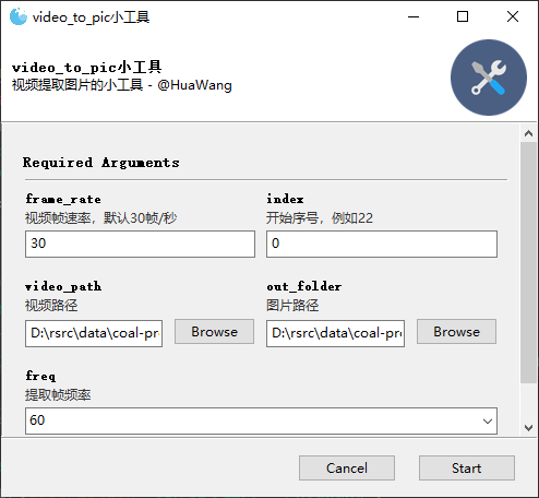 #!\Users\Local\Programs\Python37 # -*- coding: utf-8 -*- # import cv2 from moviepy.editor import VideoFileClip from tqdm import tqdm from gooey import Gooey, GooeyParser def get_video_duration(video_path): """#获取video时长""" duration =VideoFileClip(video_path).duration return duration def extract_frames(video_path, out_folder, index, frame_rate,freq): """抽取视频帧""" total_time=get_video_duration(video_path) total_pic_num =int(total_time*frame_rate) pbar = tqdm(total=total_pic_num) video = cv2.VideoCapture(video_path) if not video.open(video_path): print("can not open the video") exit(1) count = 0 flag =True while flag: _, frame = video.read() if _: if count % freq == 0: save_path = "{}/{:>05d}.jpg".format(out_folder, index) cv2.imwrite(save_path, frame) index += 1 count += 1 pbar.update(1) print("",flush=True) else: flag =False video.release() pbar.close() print(f"提取{index}帧图片成功") @Gooey(program_name="video_to_pic小工具",encoding='cp936') def main(): base_path = r"D:\rsrc\data\coal-project" parser = GooeyParser(description="视频提取图片的小工具 - @HuaWang") parser.add_argument('frame_rate', help="视频帧速率,默认30帧/秒", default=30) parser.add_argument('index', help="开始序号,例如22", default=0) parser.add_argument('video_path', help="视频路径", widget="FileChooser",default=base_path) parser.add_argument('out_folder', help="图片路径", widget="DirChooser",default=base_path) parser.add_argument('freq', help="提取帧频率",choices=["30","60","90","120","240","360"],default="60") args = parser.parse_args() #将用户输入的所有文本转化为对应对象的变量值,args.var 可提取对应的变量值 extract_frames(args.video_path, args.out_folder,int(args.index),int(args.frame_rate),int(args.freq)) print("over!!!!!",flush=True) if __name__ == '__main__': main() # if __name__ == '__main__': # base_path =r"D:\rsrc\data\coal-project" # video_path = fr'{base_path}\belt\youshi\youshi-belt1.mp4' # out_folder = fr'{base_path}\belt\youshi\frames' # if not os.path.exists(out_folder): # os.makedirs(out_folder) # freq = 60 #要提取的图片 1帧/60帧 viedo:30帧/s # index =0 #开始序号 # frame_rate=30 #视频每秒帧数 # extract_frames(video_path, out_folder,index,frame_rate,freq)
