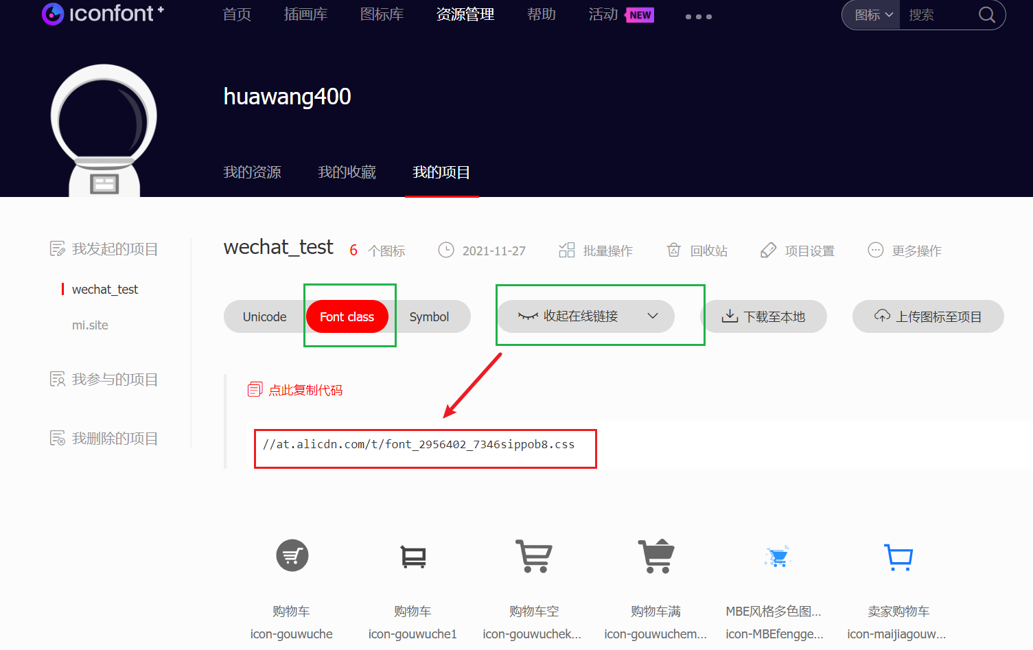 1. 打开阿⾥巴巴字体图标 ⽹站