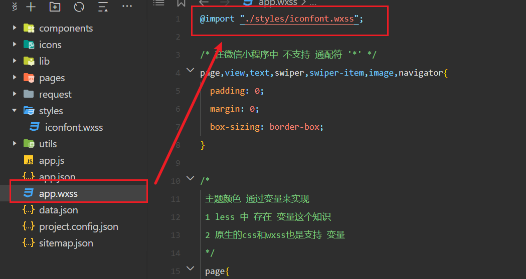 5. 将样式⽂件复制到本地 由 css 修改为 wxss