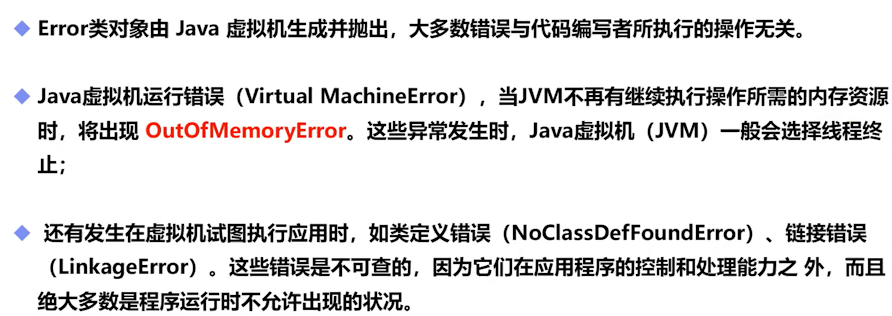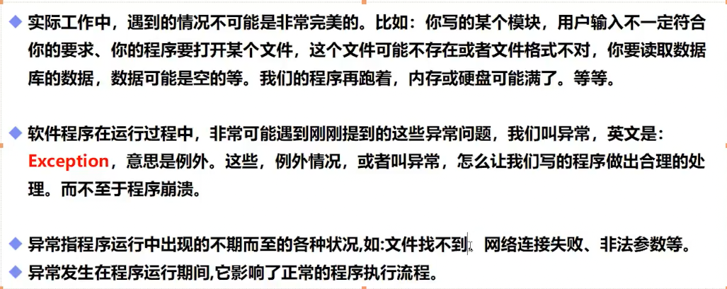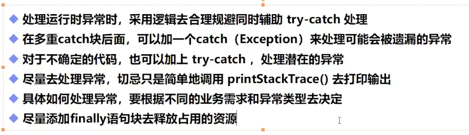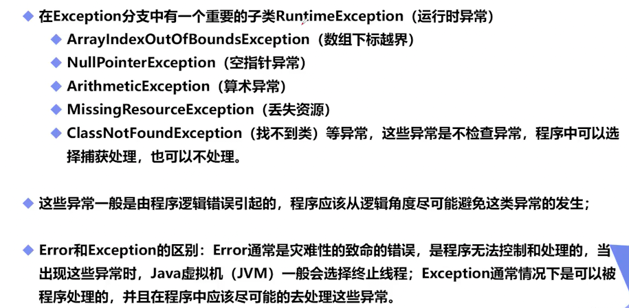 public class Test { public static void main(String[] args) { int a = 1; int b = 0; //Ctrl + Alt + T 生成异常捕获 try { // 监控区域 System.out.println(a/b); // 捕获多个错误:类型从小到大 }catch (Error e){//catch(异常类型)用于捕获异常 System.out.println("程序错误"); }catch (Exception e){ System.out.println("程序异常"); }finally {// 无论是否捕获到异常都会执行 System.out.println("Closed"); } // finally 非必须,一般用于关闭资源、IO } }public class Test1 { public static void main(String[] args) { try { new Test1().check(1,0); } catch (ArithmeticException e) { e.printStackTrace(); } } // // 假设这个方法处理不了这个异常,方法向上抛出 public void check(int a, int b) throws ArithmeticException{ if (b==0){ throw new ArithmeticException();//主动抛出异常,一般在方法中使用 } }