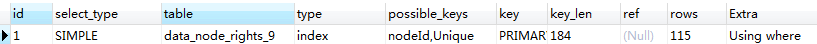 EXPLAIN SELECT * FROM data_node_rights_9 WHERE companyId = 002019042411521713700004478023 AND operateOjbect = 002019042411521722800004543517 AND nodeId IN ( 002020031918313294600000255615, 002020031918314212100000757898 ) AND deleteFlag = 0