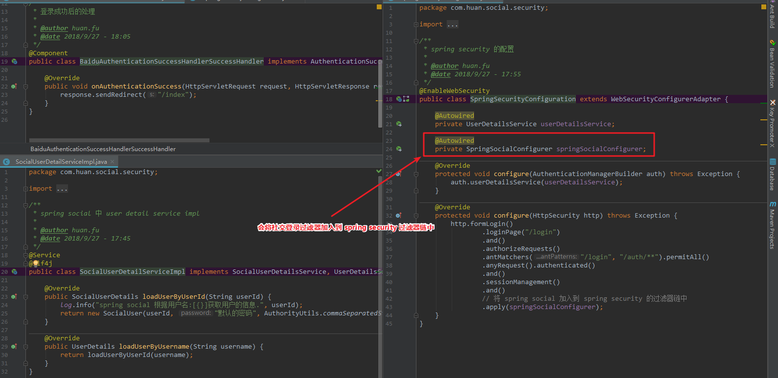 在早期我写过一篇spring social理解的文章,介绍了一些spring social的概念,但是没有提供一个例子。在这篇博客中,提供一个简单的spring social的例子,实现 百度登录,那为什么不实现QQ登录或微信登录,主要是在QQ和微信上申请应用比较麻烦,没有百度方便,在文章的末尾我也放出 QQ登录 和 微信登录 的源码。2018-11-28号增加了一个 github 的登录。
