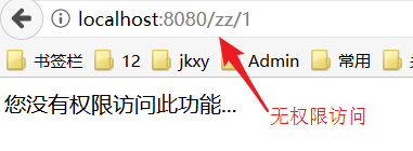 四、查看结果(/zz/**这个url需要的权限为010201,而我们只有01,0102,这2个权限,所有就报了无权访问这个。)