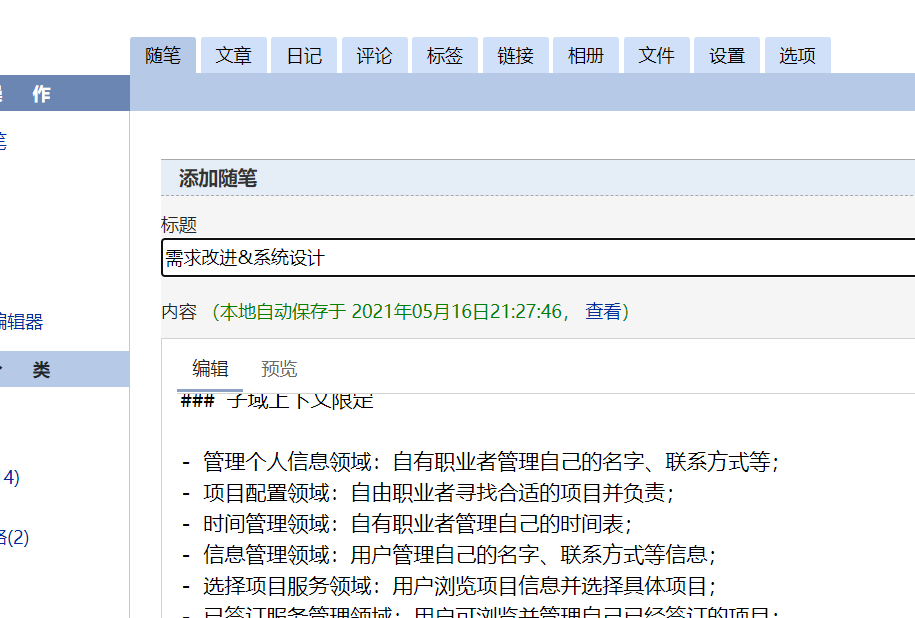 - 管理个人信息领域:自有职业者管理自己的名字、联系方式等;