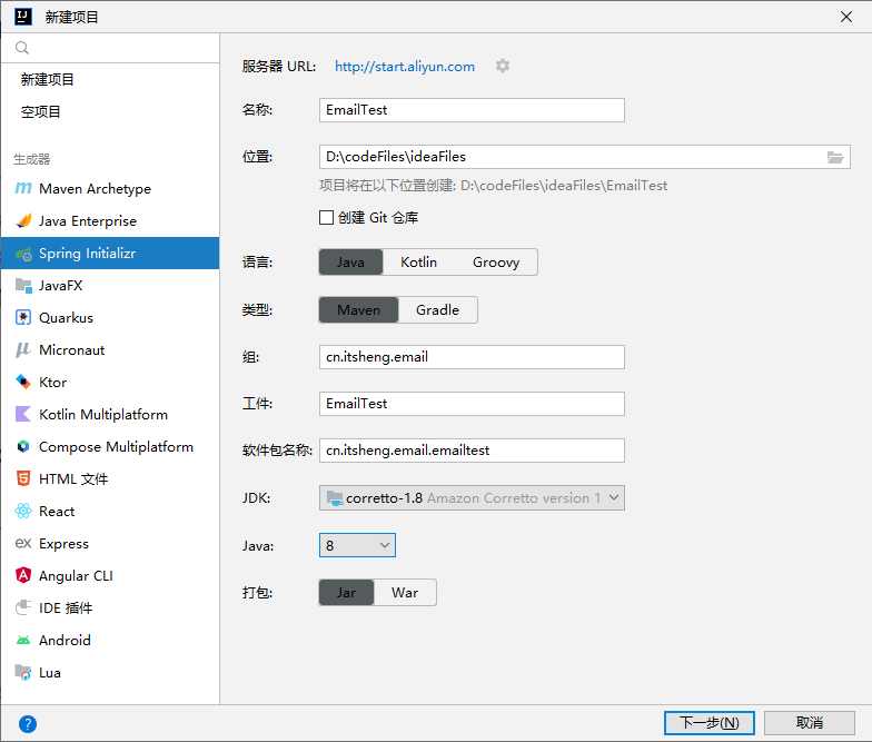 这里我导入两个依赖,分别是 spring-boot-starter-mail 和 hutool-all