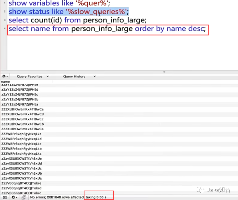 接着我们继续执行查询语句,此时name已经是添加了索引的。