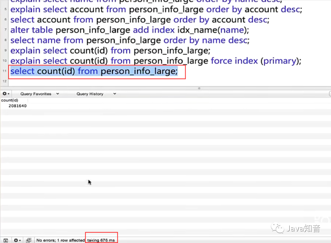 我们看一下优化器默认使用唯一索引大致执行时间676ms