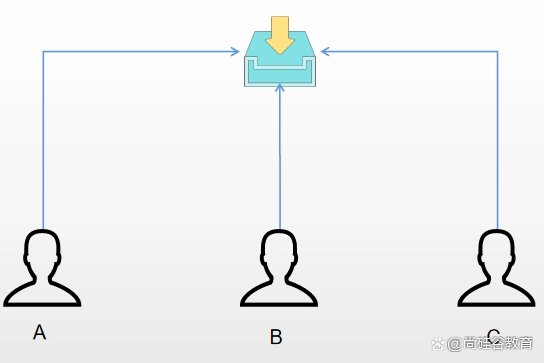 A、B、C都要往柜子里面放东西,可是柜子只能存放一个东西,那么怎么处理?这个时候我们就引出了锁的概念,三个人中谁先抢到了柜子的锁,谁就可以使用这个柜子,其他的人只能等待。比如C抢到了锁,C就可以使用这个柜子,A和B只能等待,等到C使用完毕之后,释放了锁,AB再进行抢锁,谁先抢到了,谁就有使用柜子的权利