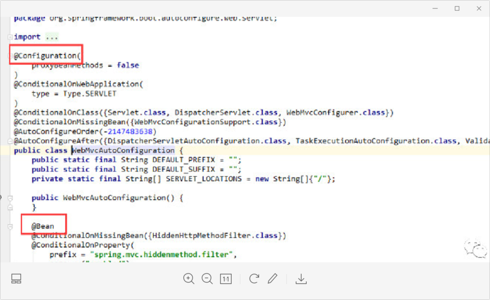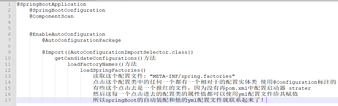 1 // 点进去得到下面的 @Component 2 @Configuration 3 public @interface SpringBootConfiguration {} 4 5 @Component 6 public @interface Configuration {}