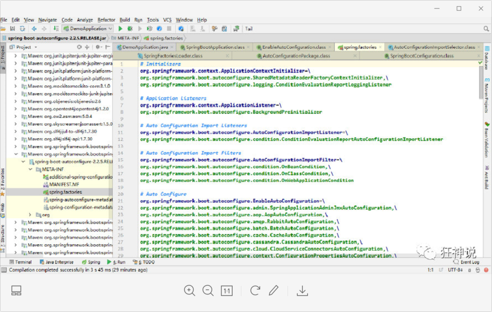 从主程序点击@springBootApplication一直点击进去会有 找到相应的配置类 这个配置类会在一个maven jar 依赖中的一个配置文件中