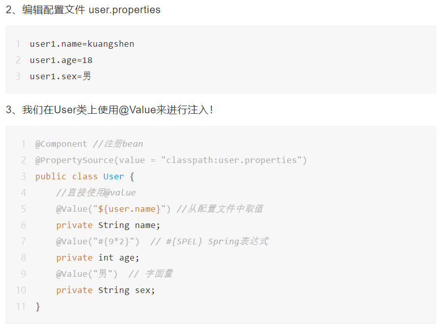 这些配置类的属性值可以使用注入的方式赋值() , 也可以使用 @value注解在配置实体类中进行赋值操作(spring) ,以前使用set方法或者构造器方式进行赋值的操作