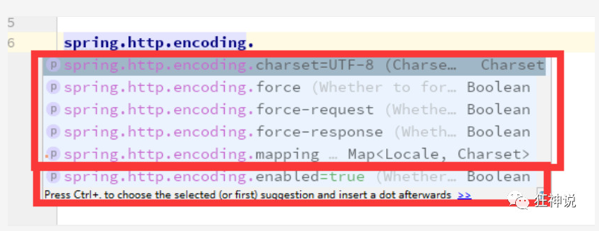 1 @ConfigurationProperties( 2 prefix = "spring.mail" 3 ) 4 public class MailProperties { 5 private static final Charset DEFAULT_CHARSET; 6 private String host; 7 private Integer port; 8 private String username; 9 private String password; 10 private String protocol = "smtp"; 11 private Charset defaultEncoding; 12 private Map<String, String> properties; 13 private String jndiName; 14 }