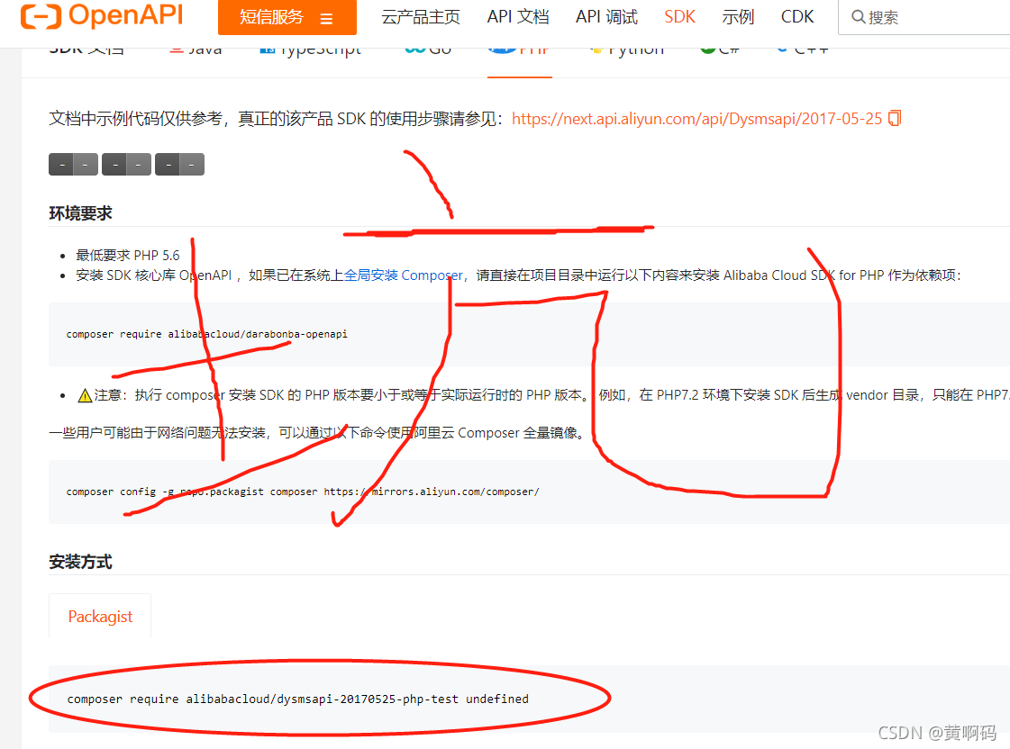 【黄啊码】PHP对接阿里云短信服务最新版(官方文档有坑,切记)