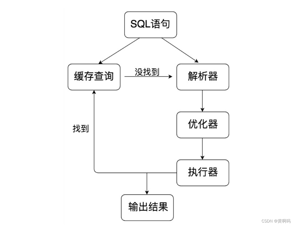 简而言之就是一句话:SQL 语句→缓存查询→解析器→优化器→执行器。