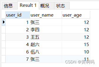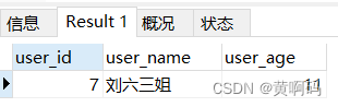 你:那如果我们想要找有关刘三姐这条数据呢,我们先把user_id=7改为刘三姐试试看: