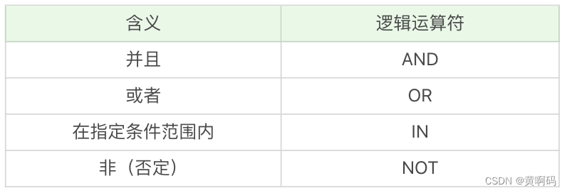我刚才介绍了比较运算符,如果我们存在多个 WHERE 条件子句,可以使用逻辑运算符: