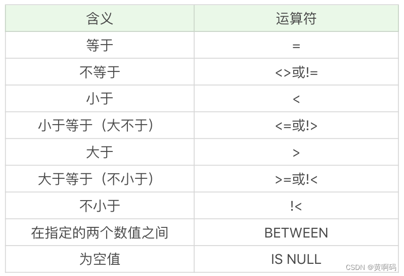 啊码贴出的这图只是常用数据库的运算符,建议别直接copy就用。