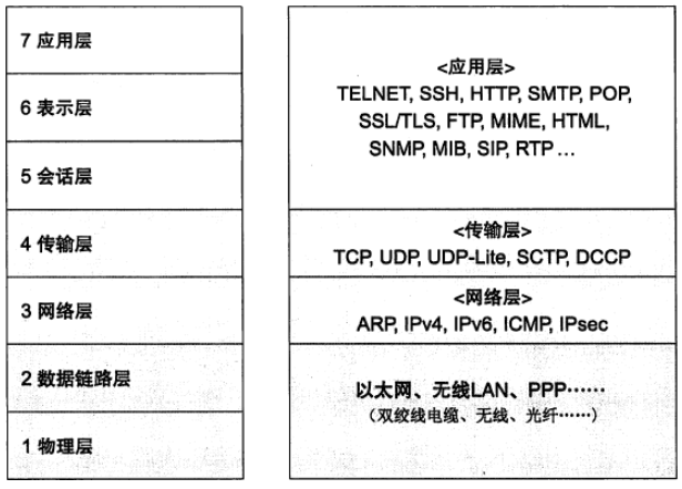 下面是协议层从底层至顶层的一个模型图: